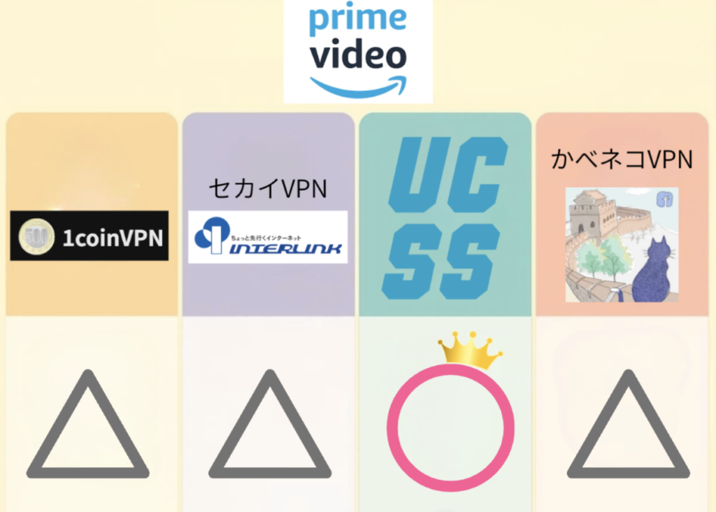 1coinVPN: 格安で視聴可能ですが、サーバーの当たり外れが激しく、混雑時は読み込みで動画が止まりやすいです。