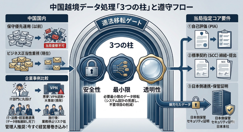 中国越境データ移転を適法化する「3つの柱」|安全性・最小限・透明性の証明