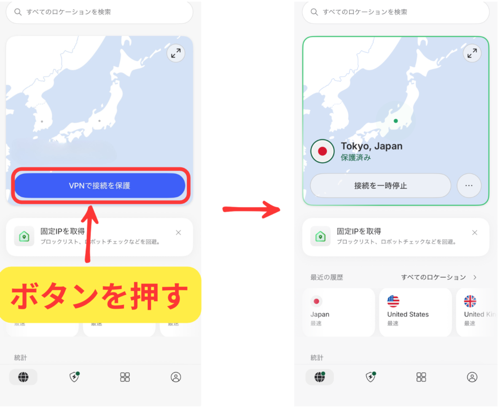 iPhone/iPadなどのiOSでの基本的な使い方|接続・切断・サーバー変更・トラブル解決