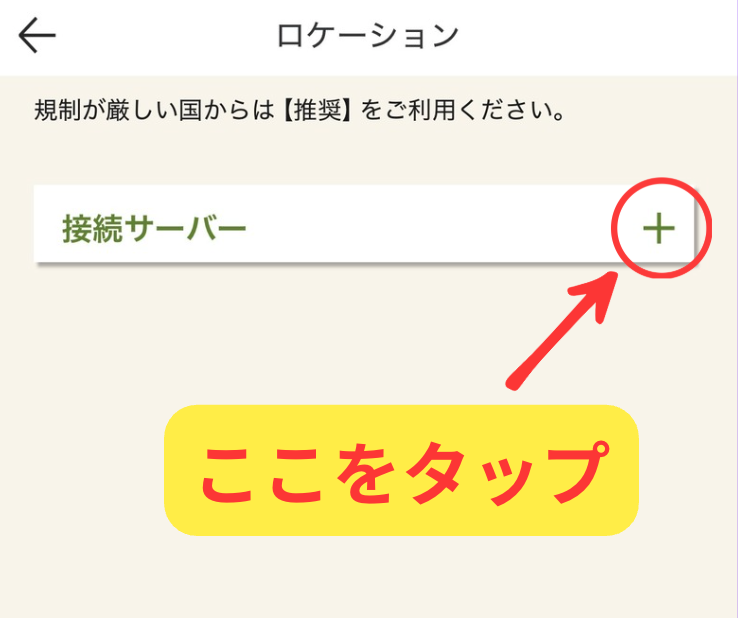 「ロケーション」をタップすると、接続できる国や地域の一覧が出てきます。