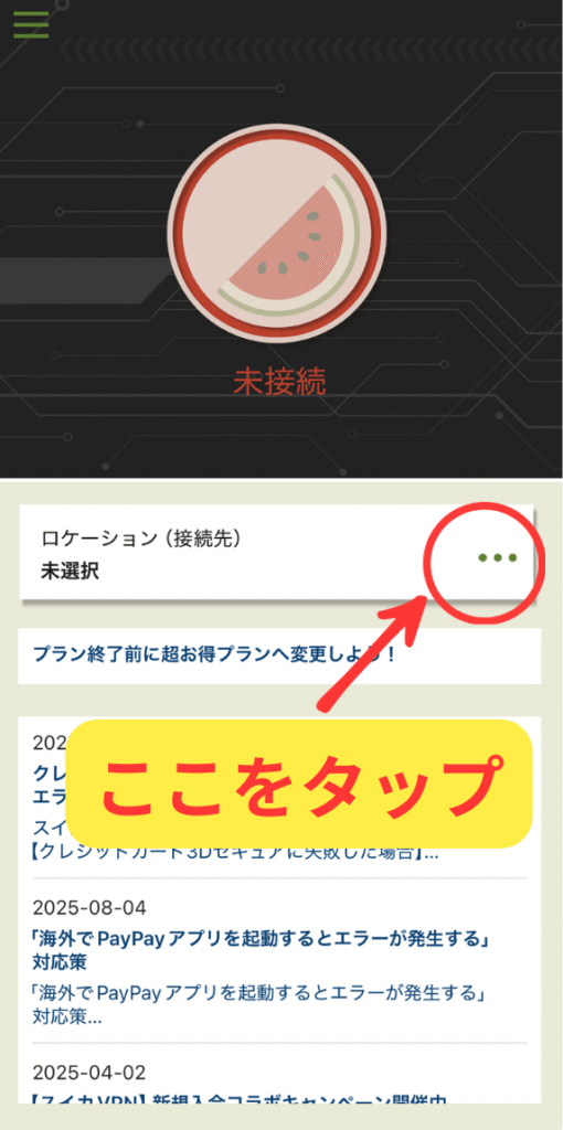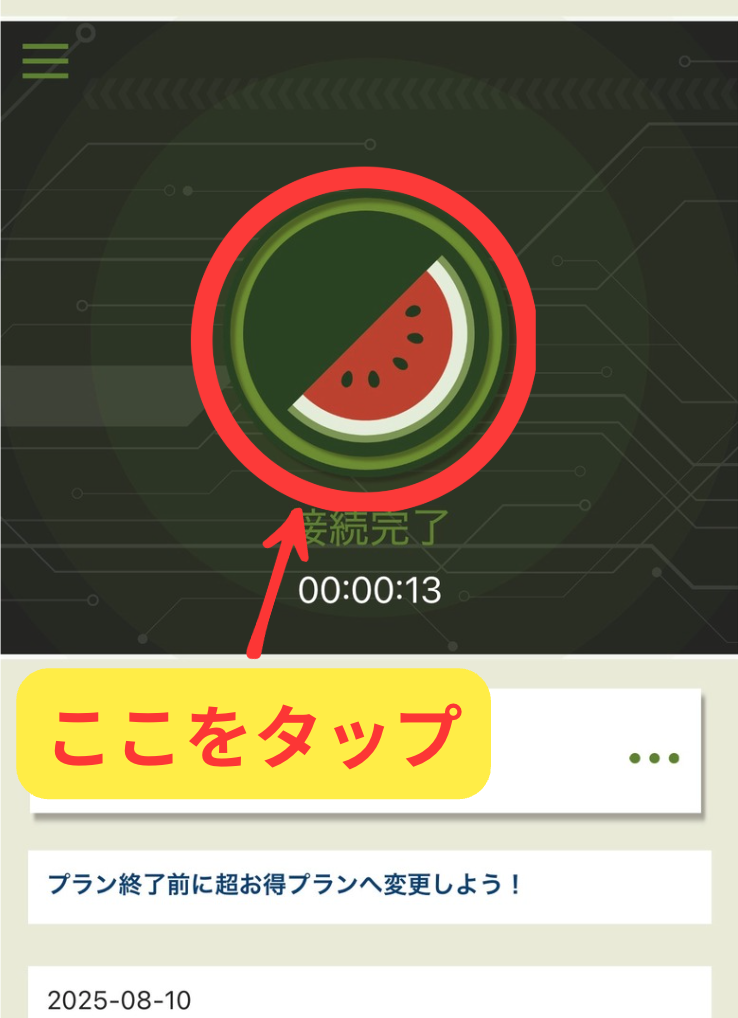 接続を切りたい時は、もう一度スイカマークをタップするだけ。