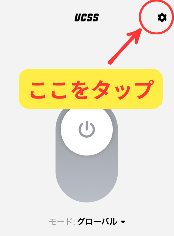 UCSSアプリのトップ画面の右上の歯車をタップします