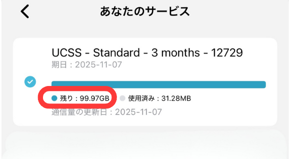 ここから残りの通信量を確認できます