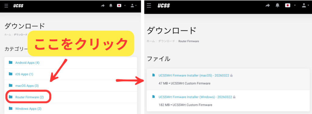 「Router Firmware」からWindows版もしくはmacOS版のインストーラーをダウンロードします。