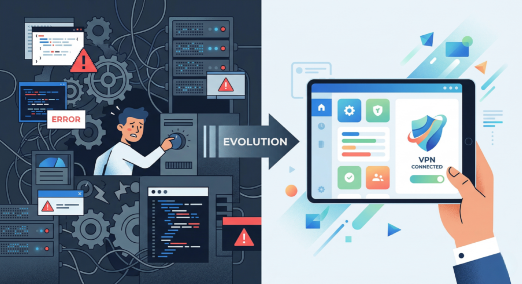 なぜ、そう言い切れるのか? ここで少し、VPNルーター設定の歴史(思考のプロセス)を整理してみましょう。