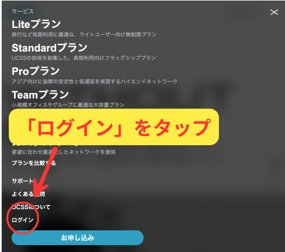UCSSに登録しているメールアドレスとパスワードではないので注意