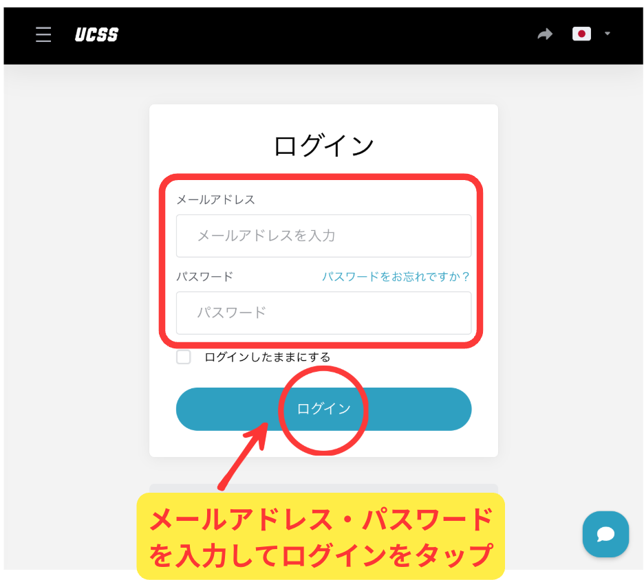 UCSSに登録しているメールとパスワードを入力してログインしてください。