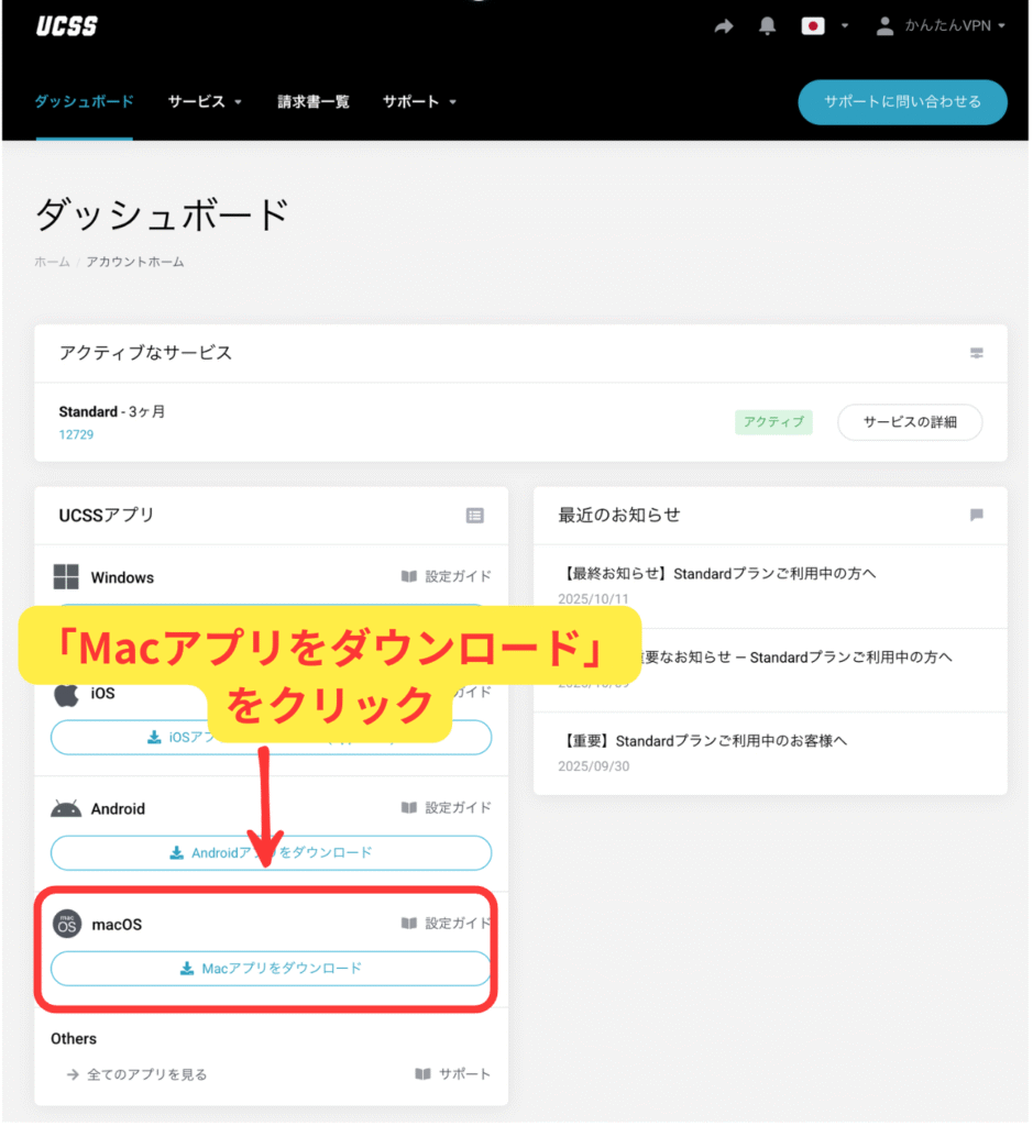 UCSSはMacでも手軽に使えるVPNサービスであり、専用アプリが無料で提供されています。