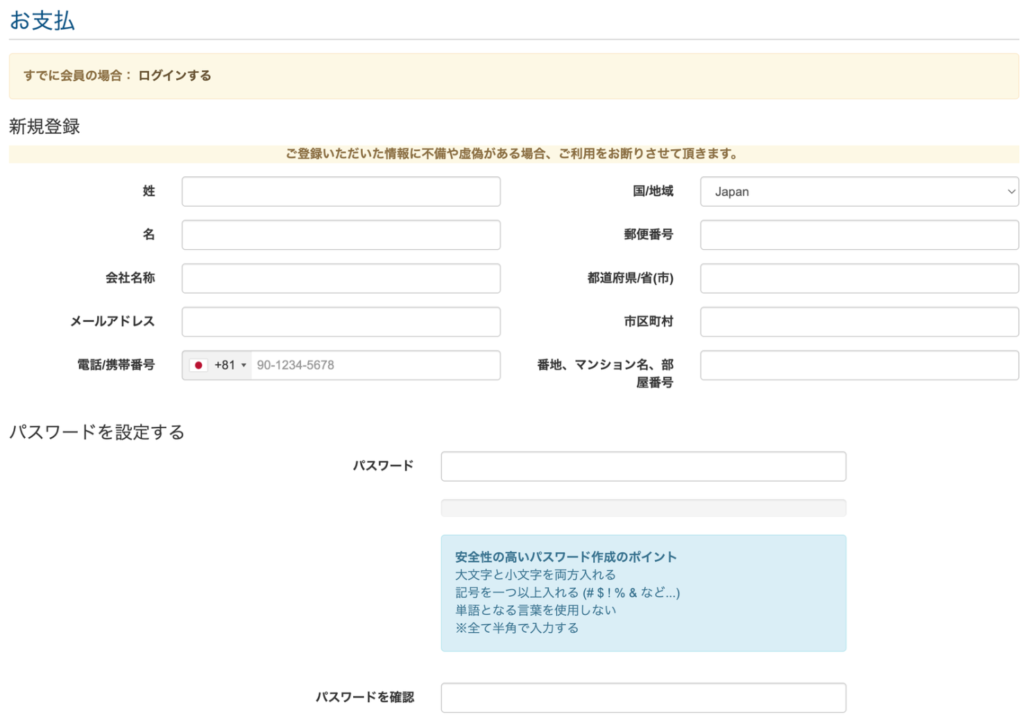 登録時には、メールアドレスとパスワードの設定が必要です。必要事項を入力します。